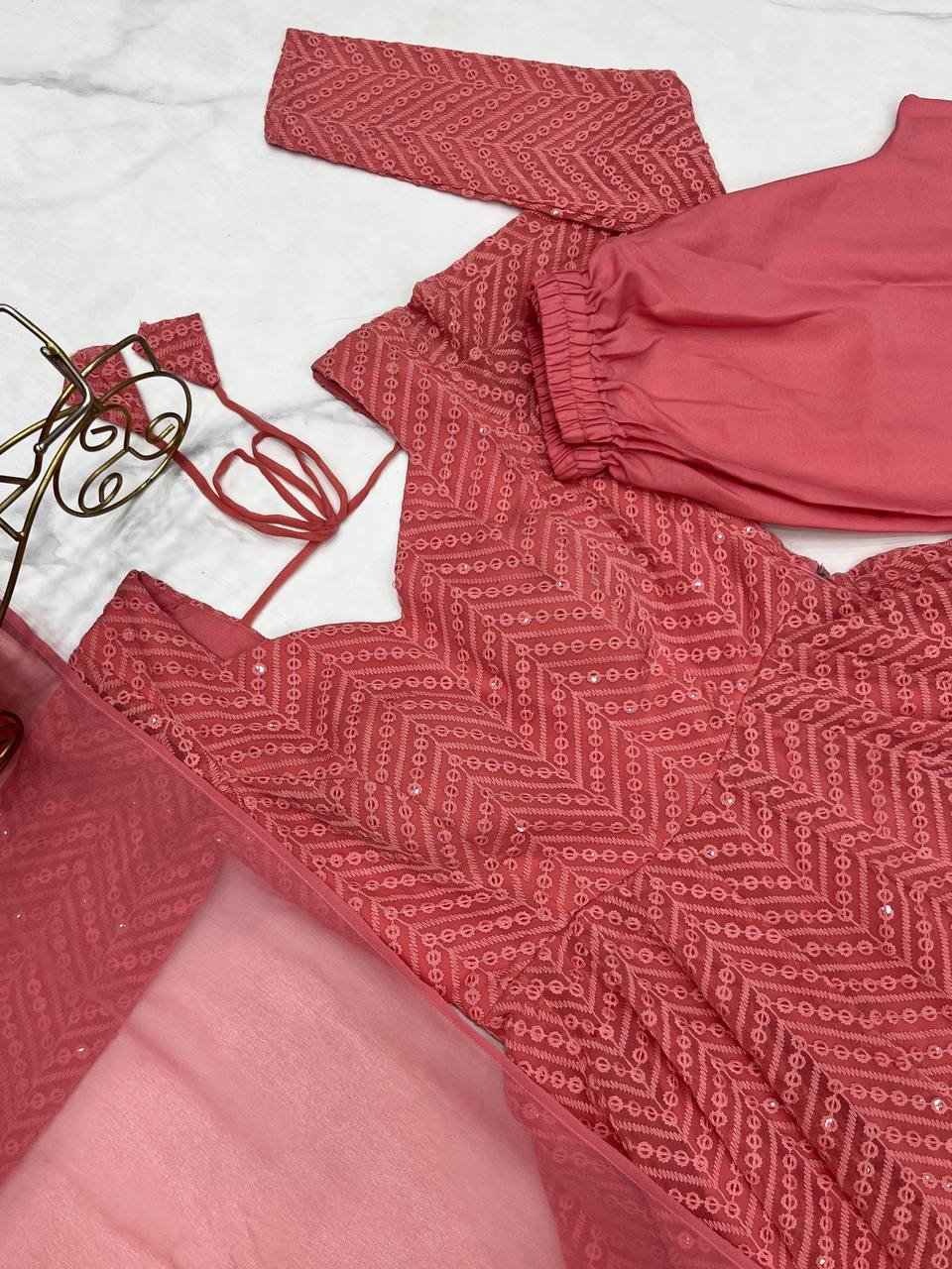 wedding Special Lukhnowi Sequence Work Anarkali Pent & Dupatta Set