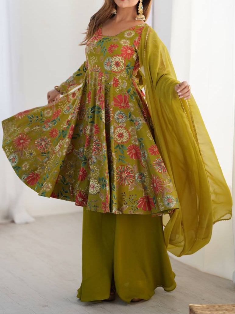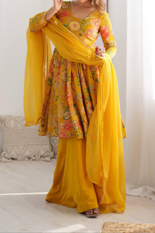 Haldi Special Kediya Kurti With Heavy Flair Palazzo & Dupatta