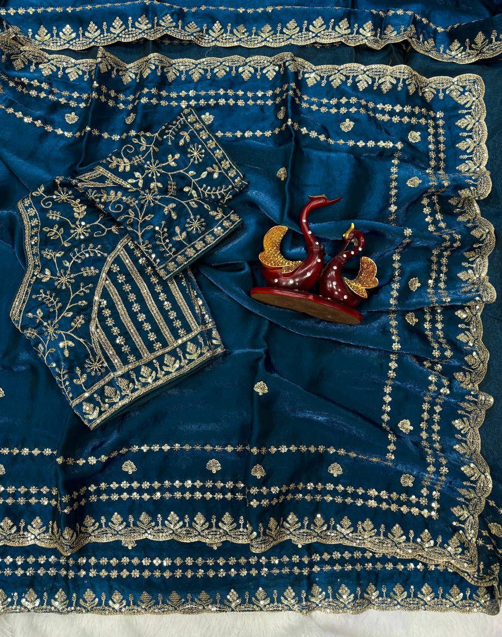 Premium designer Soft Space Silk Sequance and Zari Embroidery Work saree