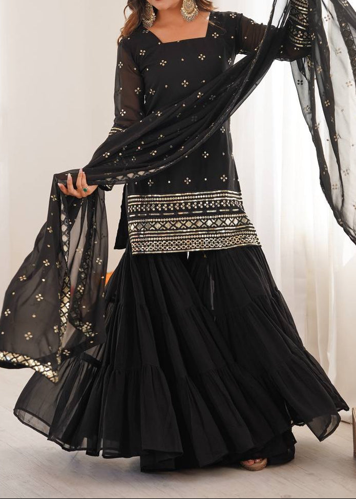 Pure Heavy Georgette Embroidery Sequence Work Top Sharara With Dupatta